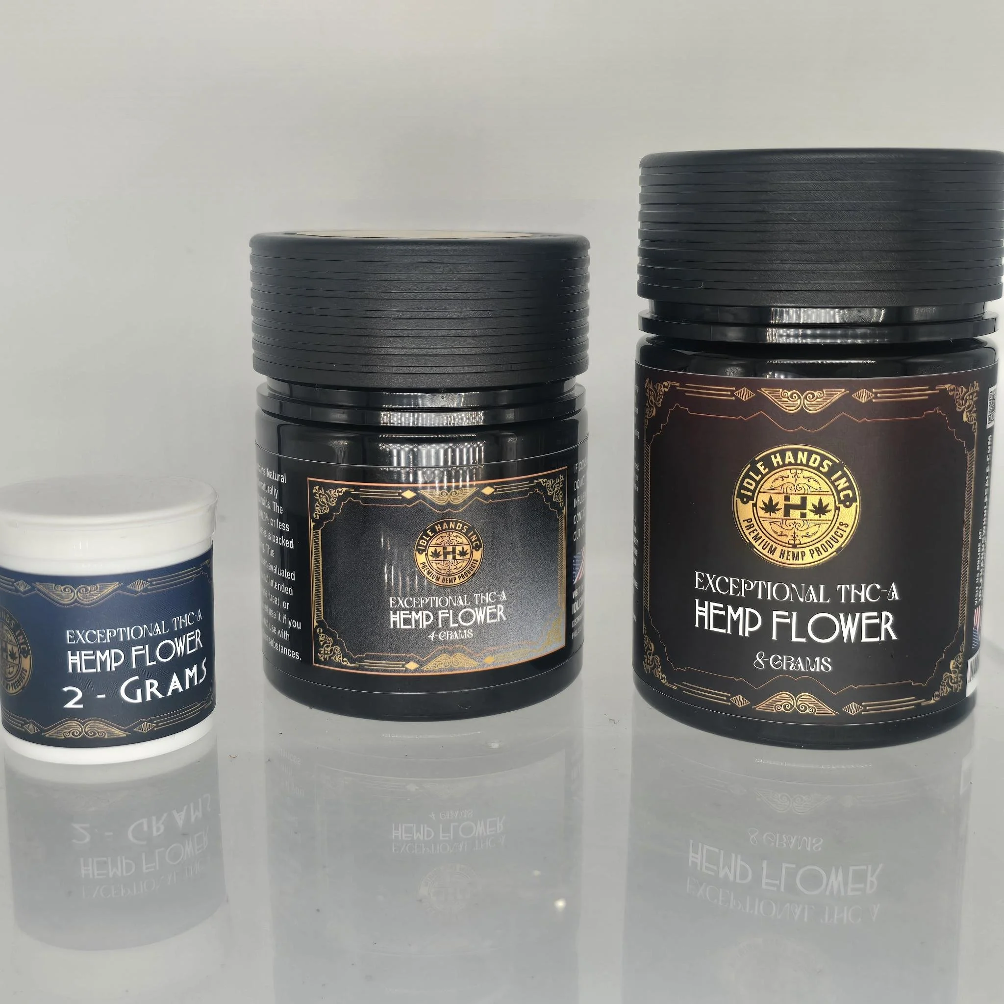 Our premium indoor flower packaged in an air tight, opaque jar. to keep it fresh and stable. Available in 2, 4, or 8 gram jars.
